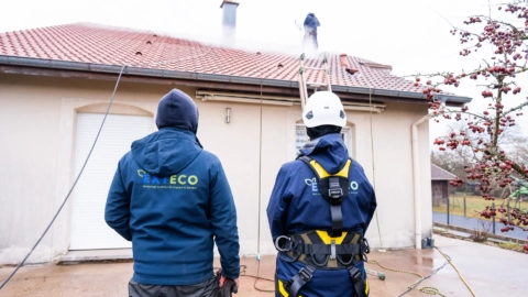 Récemment, Céline et Bertrand ont rejoint notre équipe d’Épinal pour plusieurs jours d’immersion afin de s’initier au nettoyage vapeur basse pression, utilisé pour traiter les toitures, les façades et autres surfaces extérieures.